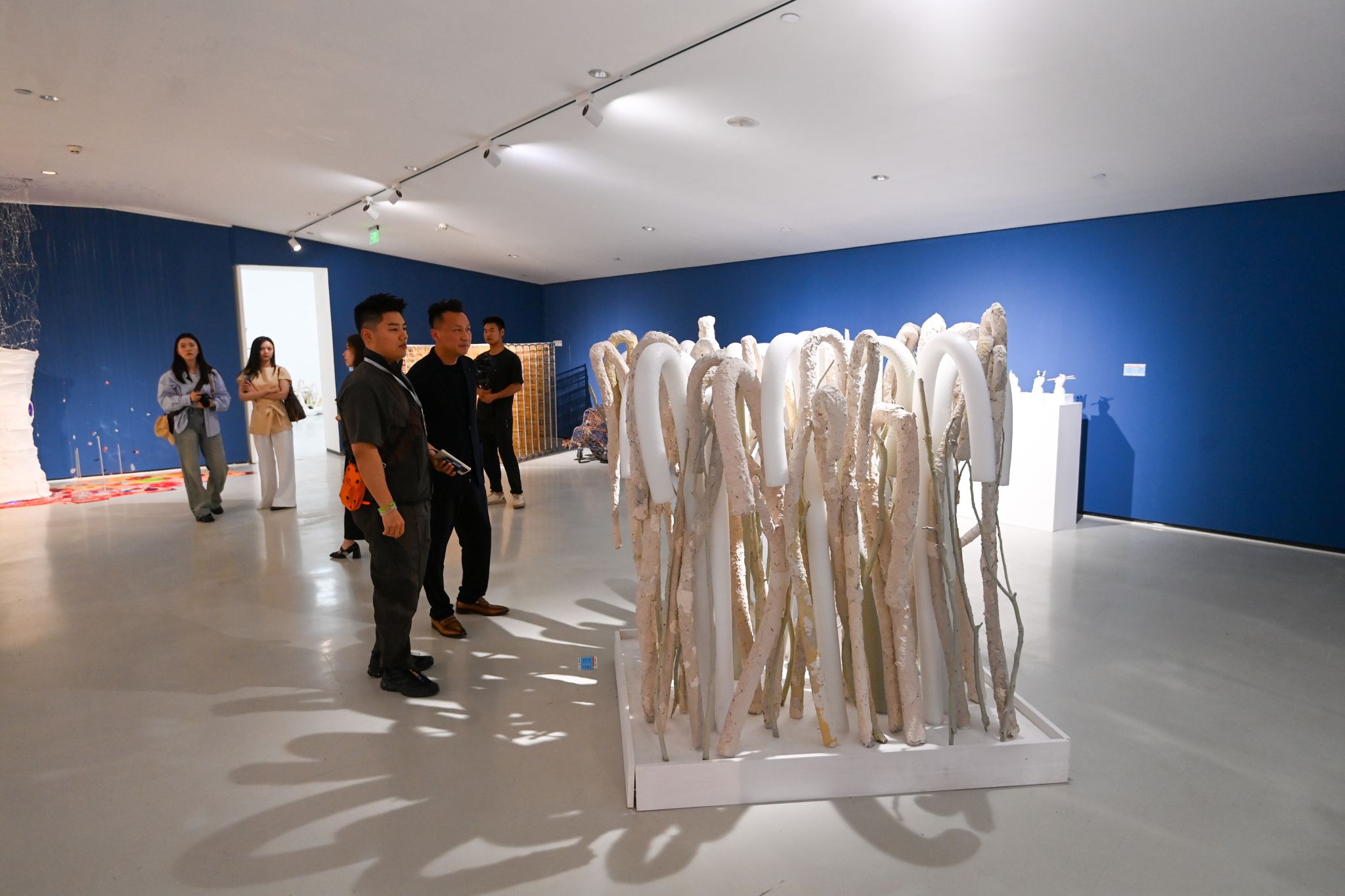 公共艺术学院展厅,以“艺术营城、艺科赋能”为主题,以艺术为纽带构建城市发展新范式,诠释人文与空间的共生共美,同时探索了科技与艺术的协同创新,演绎出共融共生的未来图景。