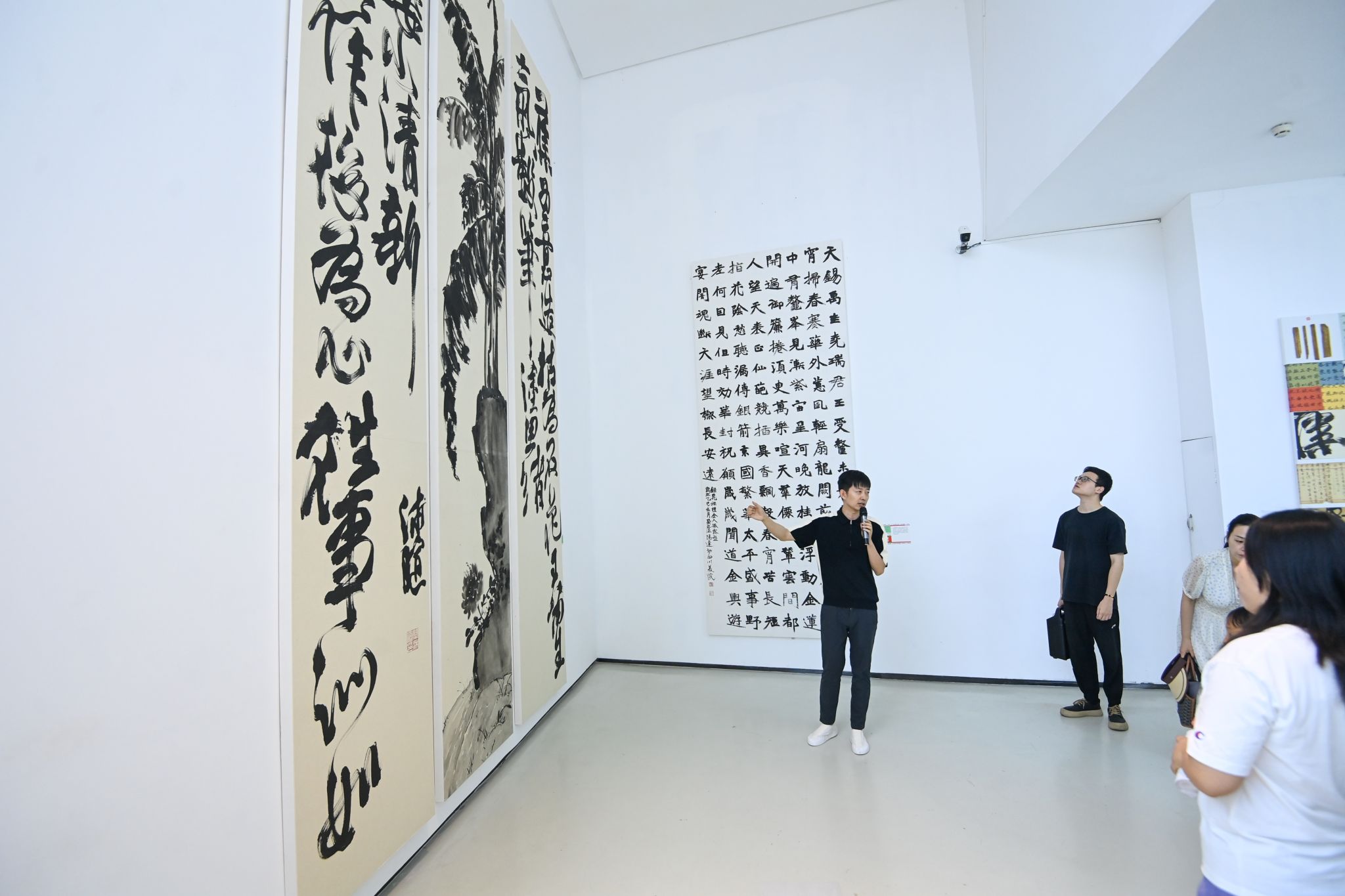 公益导览活动,由讲解员带领观众深度解读展览作品,助力观众全方位理解青年艺术家们的前沿探索与创新实践,满足不同观展需求,进而营造全城“艺”动的浓厚氛围。
