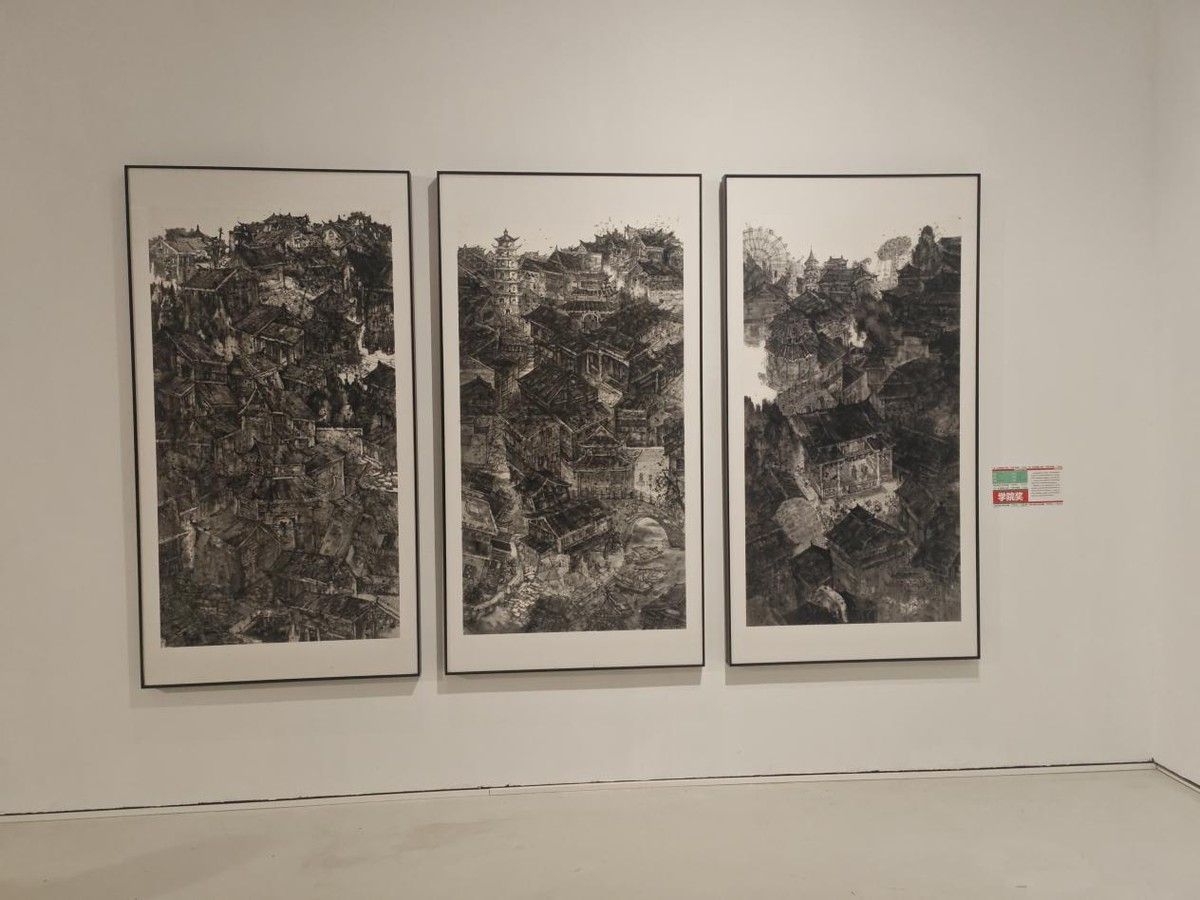 四川美术学院教务处处长苏永刚介绍,今年的毕业教学覆盖学校24个本科专业,作品包含油画、雕塑、版画、中国画和书法等,其中,获得“学院奖”的作品成为关注的焦点。油画作品《哈萨克族的新生活》围绕哈萨克族人们的生活展开,其中主画展现了哈萨克族盛大的迎亲礼,融合了阳光、树影、光线等多种元素的大幅面油画。建筑与环境艺术学院围绕“在地重塑:城市与乡村的共生未来”,聚焦于城市更新与乡村振兴两大核心议题,探讨在地文化的传承与创新,以及人与自然、环境之间的和谐共生关系。影视动画学院以“虚实共生·智创未来”为内核,以艺科融合探索“同向同行”创作生态。