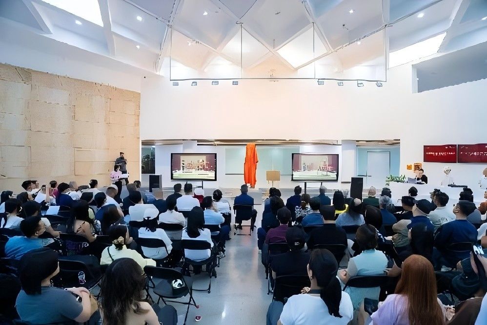 活动现场,老教授代表江碧波,四川美术学院院长焦兴涛,青年教师代表尹代波以及学生代表张婷坤共同为数字复原作品启幕。