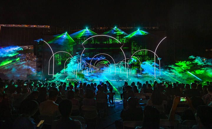 ▲5月25日晚,四川美术学院“开放的六月”特别活动“美术馆之夜”跨界视觉秀现场,现场正在表演精彩的灯光秀表演。记者 郑宇 摄/视觉重庆