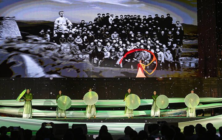 其中,节目《我们在路上》带领观众追溯了川美璀璨的奋斗历程:从军民一家亲的雪地《开路》,到饱含民族觉醒的《穿越时间的呐喊》,再到震撼人心的时代肖像《父亲》;从凝聚东方审美的《魂韵》《门神》《才子》等,到刻画平民英雄书写华章的《烈焰青春》……展现了川美人以理想为笔,以激情为墨,在艺术的长路上永不停歇,共同绘就八十五载的壮美画卷。