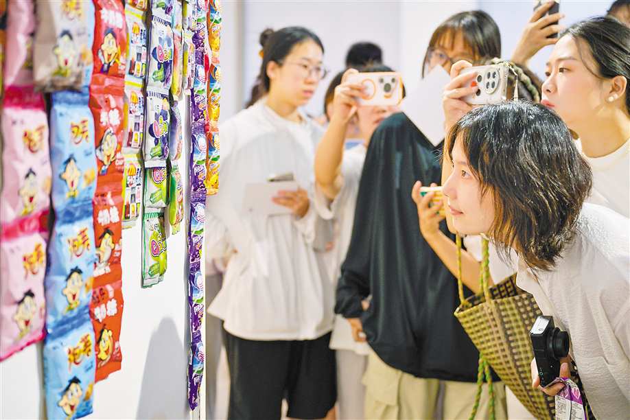 除了《祷》,同样“出圈”的还有本届川美毕业展作品《木糖纯》被网友称为“打不开的童年”,乍看是挂满童年零食的墙面,走近才惊觉是木雕复刻——连包装袋的褶皱反光都栩栩如生;《一百个人的孤独》,通过100个人物的姿态,展现了个体与集体的孤独感;《叠愿》用数十万张纸的叠加,展现了祈福文化的深意,给人带来幸福感……这些作品既贴近生活,让大众觉得有趣味,又能体现作者深厚的美术功底。