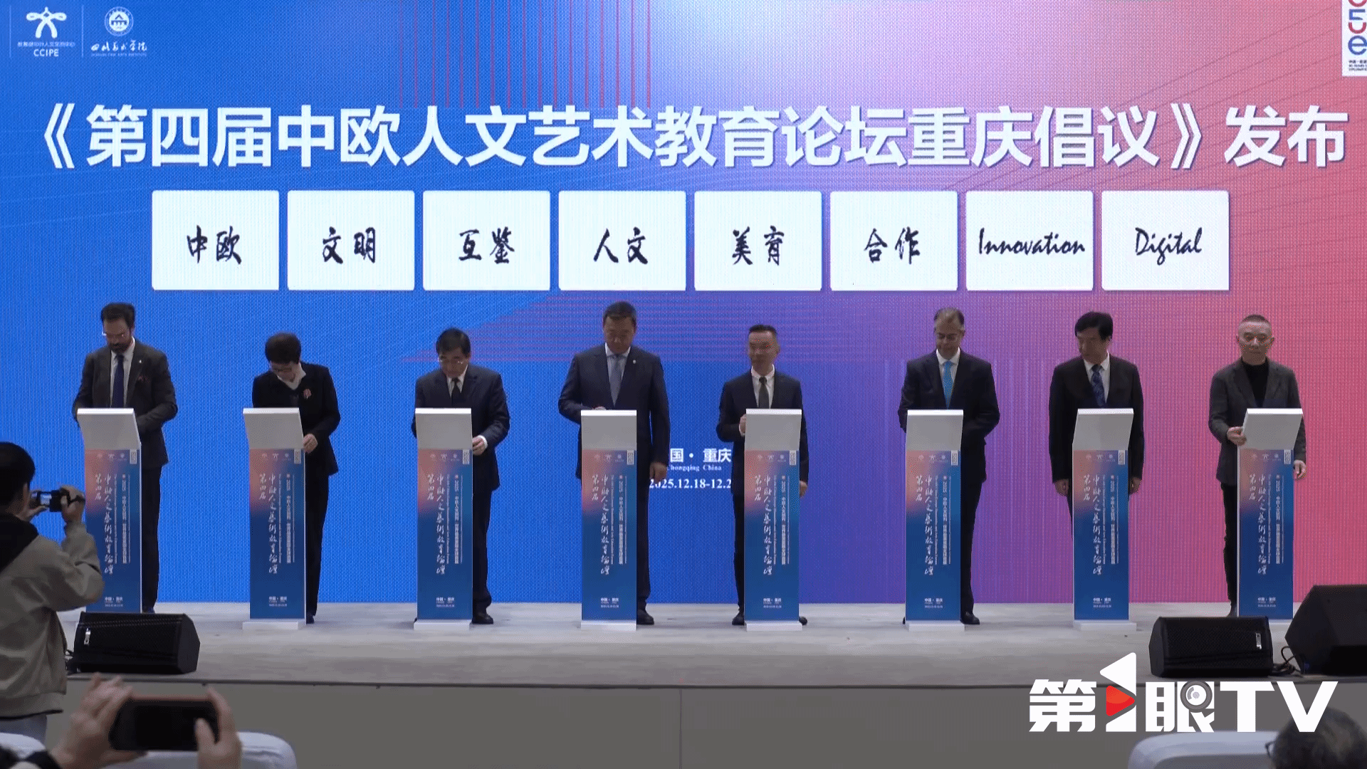 成果发布环节,与会嘉宾共同见证《中欧人文艺术教育交流与互鉴典型成果案例集》的发布,并共同发布《第四届中欧人文艺术教育论坛重庆倡议》。