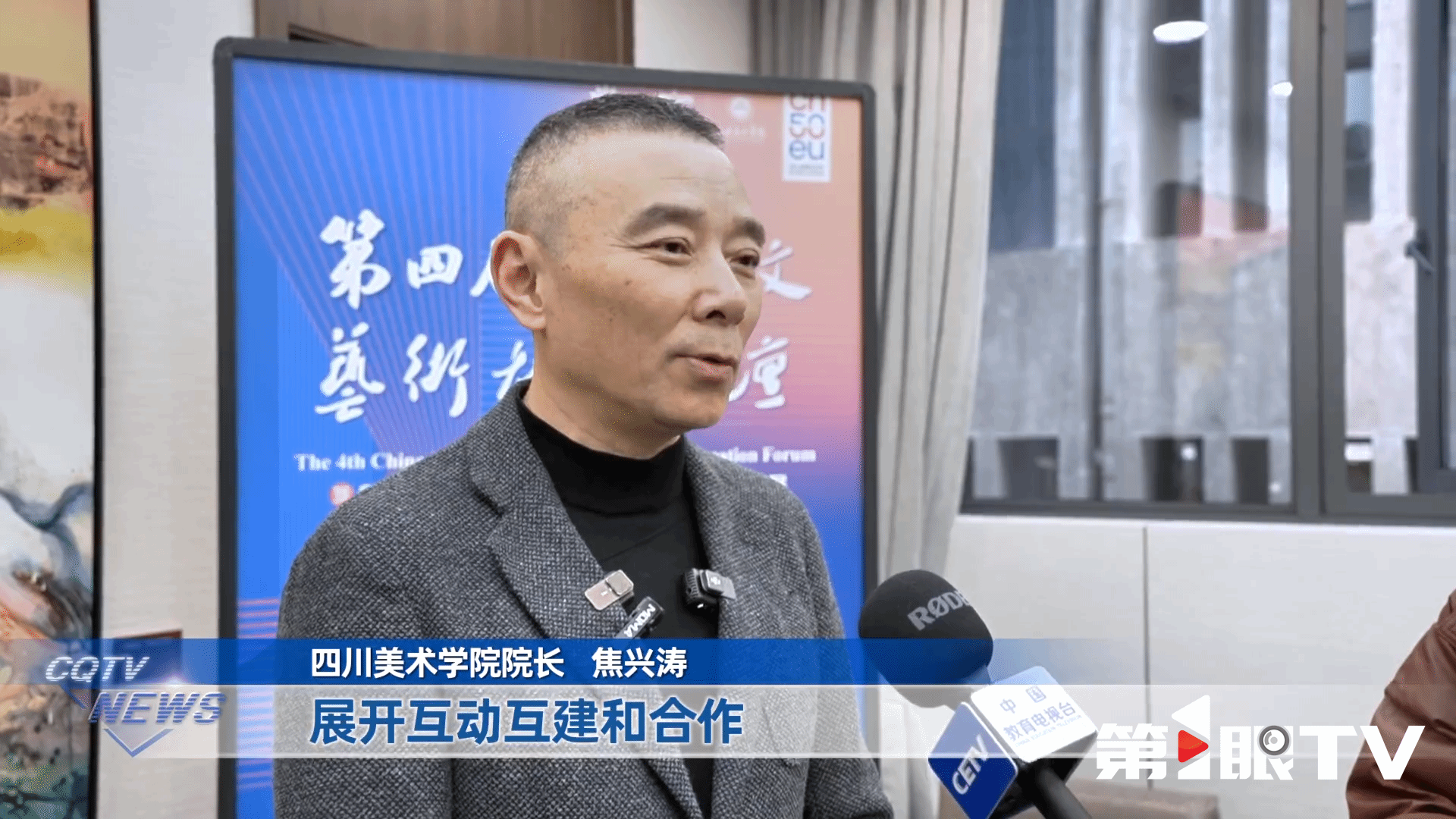 四川美术学院院长焦兴涛:“首先是在人才培养方面展开互动互建和合作。通过这样的活动来更好地推动川美发挥艺术高校的作用,来连接文化互鉴能够起到的特殊功能和作用。”