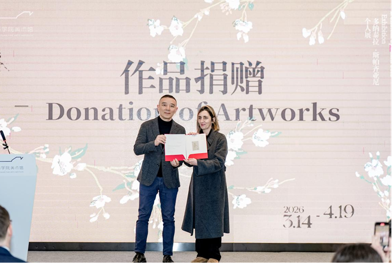斯帕齐亚尼向学校捐赠作品。四川美术学院供图