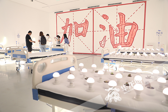 灯泡、病床组合的作品。华龙网-新重庆客户端记者 谢鹏 摄