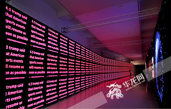 49米的通道里,师生们用多媒体技术,将在100天里搜集到的全球新冠疫情数据变化,用可视化效果展示出来。形象直观的可视化展示,让观众们体会到人类作为命运共同体必须携手抗击病毒。