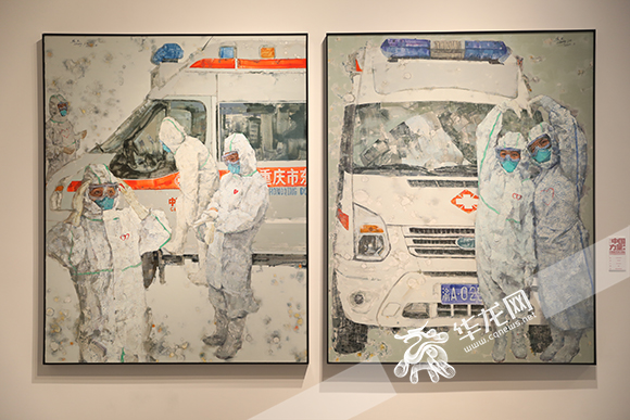 “中国力量”疫情防控主题创作展今日开展。华龙网-新重庆客户端记者 谢鹏 摄
