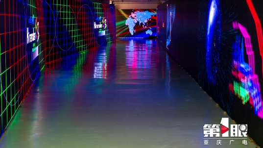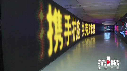 长达49米的通道里,师生们用多媒体技术,把100天里搜集到的全球新冠肺炎疫情数据变化,用可视化效果展示出来:全球每天的动态数据变化、100天的媒体报道……形象直观的可视化展示,让观众们体会到人类作为命运共同体必须携手抗击病毒。