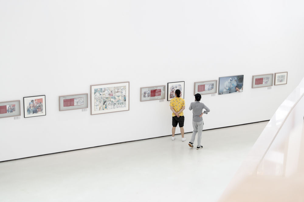 四川美术学院院长庞茂锟介绍,新冠肺炎疫情发生后,四川美术学院启动疫情防控主题创作活动,共创作艺术作品1000余件,本次展览遴选出近300件优秀作品进行展出。展览将持续至6月6日,观众可预约免费参观。