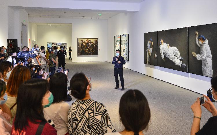 新冠疫情发生后,川美迅速启动艺术创作,全校师生先后创作出1000余件艺术作品。5月初,该校遴选出300余件优秀作品在该校美术馆进行展出。近日,川美学生陆续返校。5月18日晚,庞茂琨等10余位艺术家带着上百名学生走进学校美术馆,现场开授第一课。