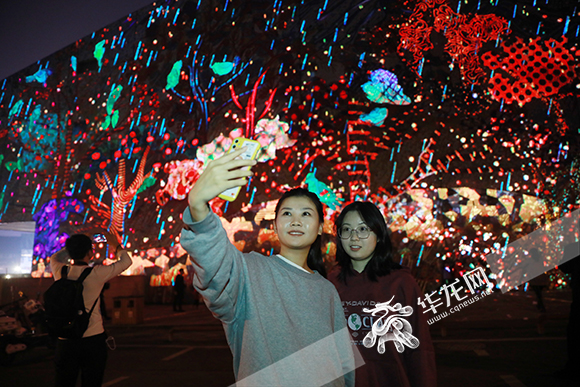学生们徜徉在灯光意境中。华龙网-新重庆客户端记者 谢鹏 摄