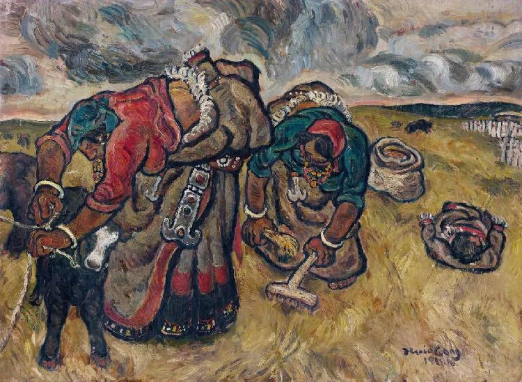张晓刚 《草原组画:暴雨将至》 纸本油画 83x110cm 1981年