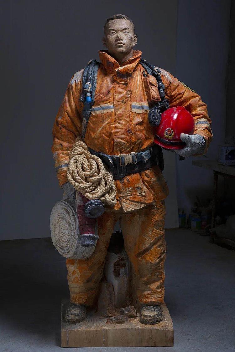 焦兴涛《烈焰青春》 木、漆、丙烯 184x98x70cm 2019年