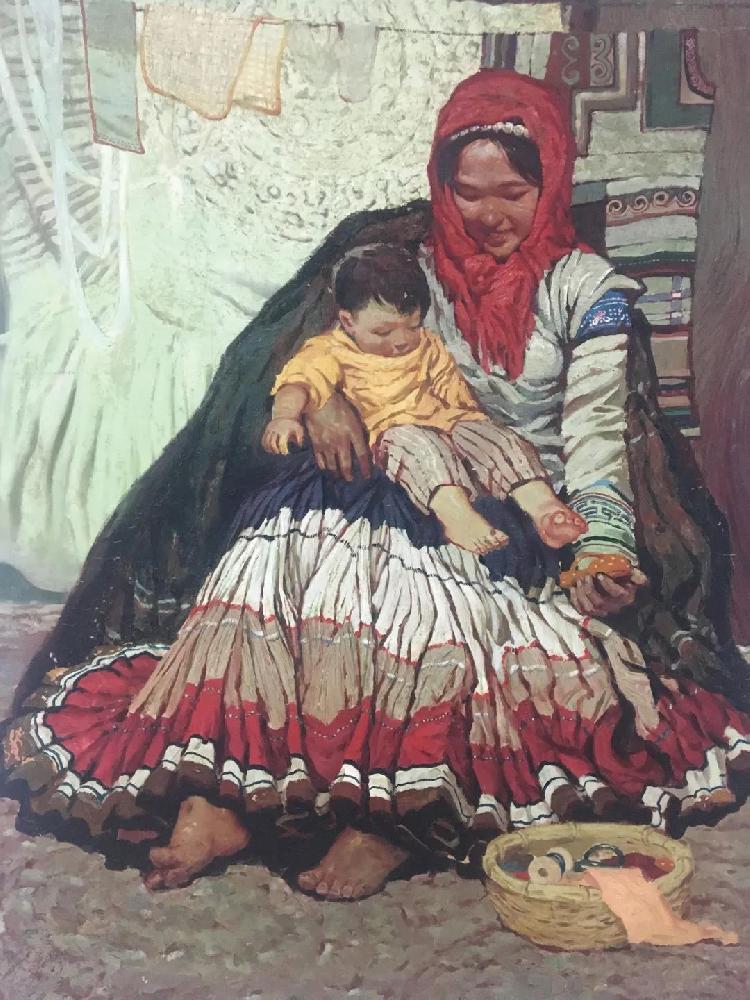 莫也 《母与子》布面油画 165x125cm 年代不详