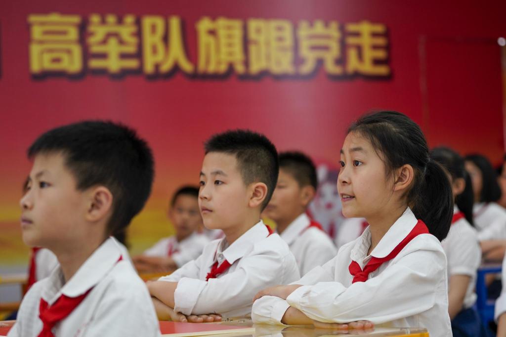 5月14日,火炬小学校的学生参加主题队会活动。 新华社记者 刘潺 摄