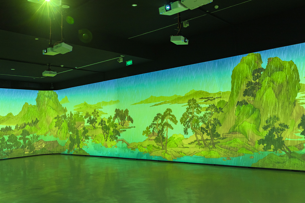 Light and VR effects are applied to more than 1,000 artworks created by expert painters from China’s ancient dynasties at an exhibition hall in Sichuan Fine Arts Institute, Chongqing Municipality. [Photo provided by Sichuan Fine Arts Institute]