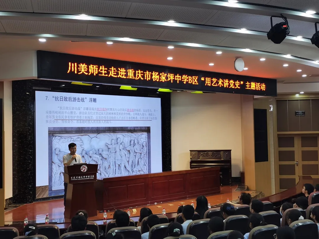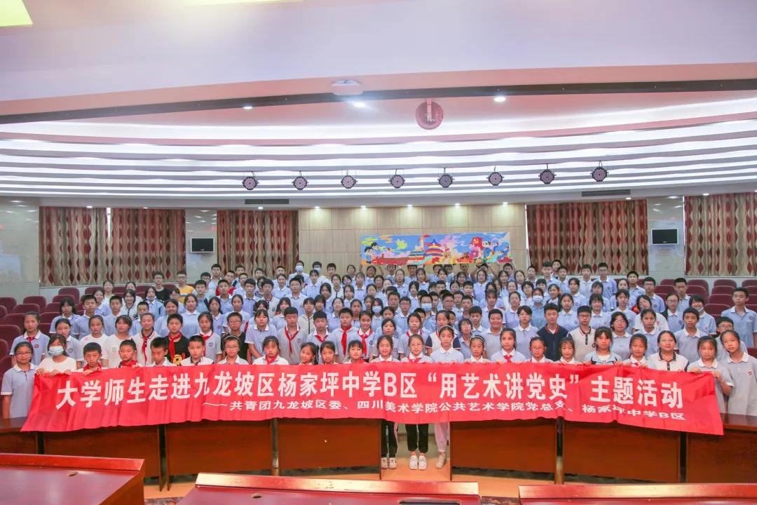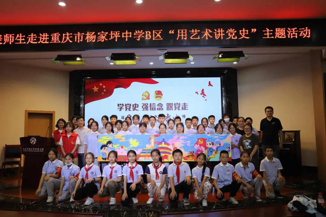 为推动党史学习教育深入青少年,教育引导青少年学党史、强信念、跟党走,争做堪当民族复兴大任的时代新人。6月16日,由共青团重庆市九龙坡区委、四川美术学院公共艺术学院党总支主办的”用艺术讲党史”主题活动走进杨家坪中学B区。