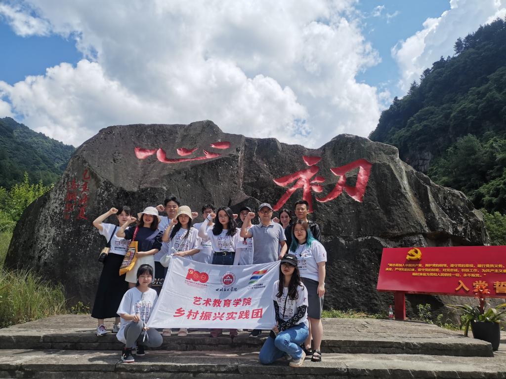 在巫山县下庄村,建筑与环境艺术学院师生们在主题党课上,在村支书毛相林的讲述中,回顾下庄人修建凿壁公路的事迹;举办了下庄传统村落保护发展项目设计的阶段成果展及开工仪式。在酉阳县花田乡,造型艺术学院师生举行文化振兴总体规划及艺术设计课题组现场调研会。在杉坪村,影视动画学院实践团队举办“庆祝中国共产党成立100周年主题海报设计展”,绘制墙绘美化村容村貌。在内口村,设计学院开设乡村美育课堂,劳动教育红红火火。在石柱县中益乡,艺术教育学院进行蜂桶装置艺术创作、重温入党誓词进行宣誓。在贵州凯里市的举办十九大木刻版画巡展是在一所乡村中学的篮球场上进行的。朴实的同学们说“我们一直以为这些高雅的画作只能在美术馆展出;我们意识到,当我们作为艺术工作者创作出来的作品,被老百姓需要和认可,才是最珍贵的,我们体会到艺术扎根人民,服务社会的力量。”中国画与书法艺术学院、公共艺术学院在九龙坡区开展国画书法创作、“五彩的楼”绘制、“微更新”改造老旧社区在地创作。在四川广元,艺术人文学院前往苍溪红军渡开展史料调研。