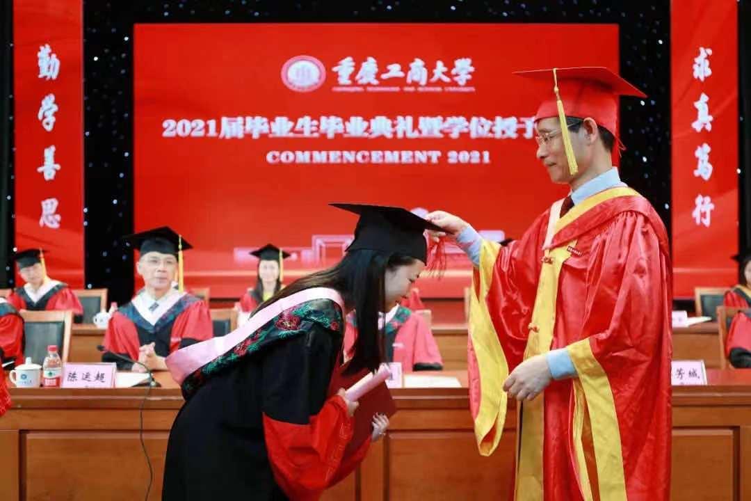 重庆工商大学校长孙芳城在2021届毕业典礼上的致辞中这样勉励青年毕业生:“在‘两个一百年’奋斗目标的历史交汇期,在庆祝中国共产党成立100周年之际,在‘十四五’开局之年,你们学成毕业,正式接过了时代的接力棒,向第二个百年奋斗目标进发。要将中华民族伟大复兴的中国梦作为生命中的理想之光,让这一道光指引自己前进、奋斗,充分发挥所学和才干,让自己的价值在实现民族复兴的征程中熠熠生辉!”