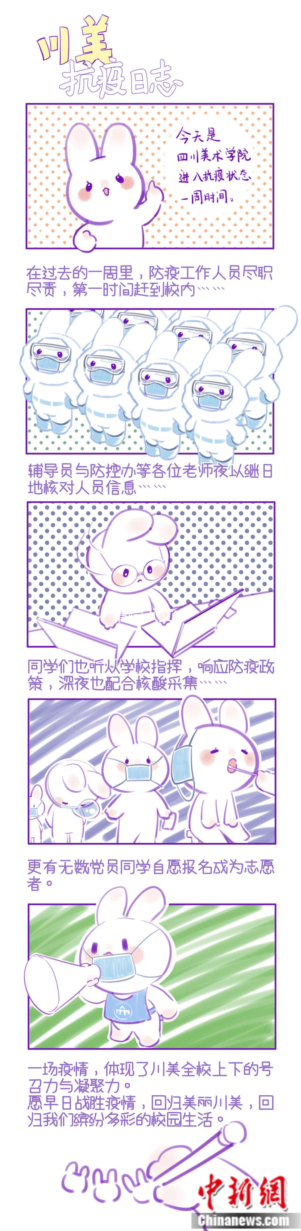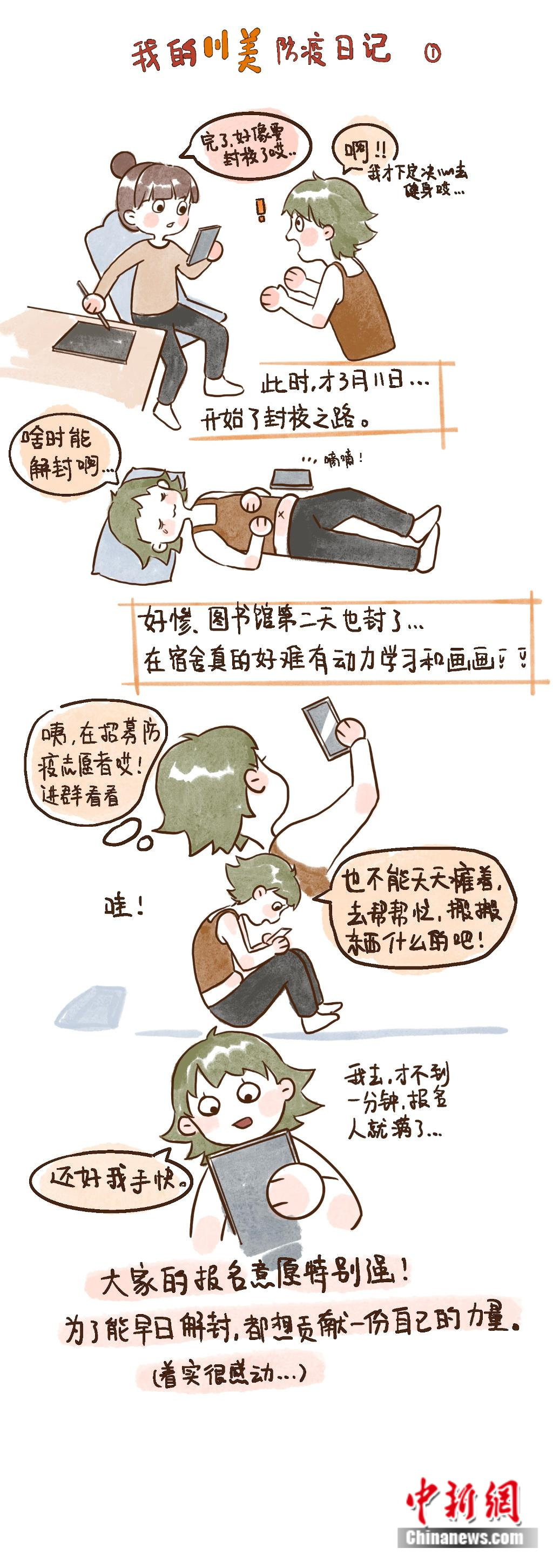 中新网重庆3月22日电(高吕艳杏)“一双双不停忙碌的手、一次次被打湿的防护服、一个个逆行的背影,构筑起四川美术学院春天里最温暖的防线。”这是四川美术学院影视动画学院学生吴洧锐在《川美抗疫日志》的所见所感,她以画笔记录下川美抗疫一周感人的故事。