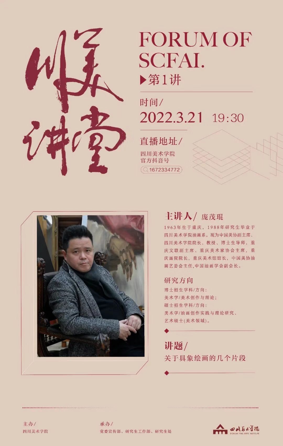具象绘画在叙事与情境、表现与观念、风格与⽓质等方面,极具丰富性。”3月21日19时30分,川美讲堂线上课第一期在四川美术学院官方抖音号直播开讲。中国美协副主席、重庆市美协主席、四川美术学院院长庞茂琨以“关于具象绘画的几个片段”为题,分享了他在创作、设计、研究上的最新心得和成果,探索社会美育新模式。