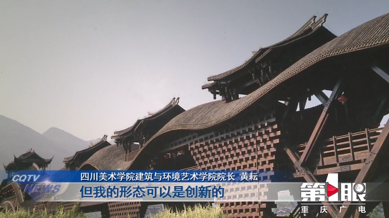 “用纯木结构去做了曲线,所以最后龙桥的尾巴段,就是完全自由的圆润的曲线,在纯木结构上是不太容易看到这种曲线的。所以说濯水风雨廊桥不是过去的,它是过去、现在和未来相结合的。工匠是传统的,技术是传统的,但形态可以是创新的,这也是我们创新的一个理念”,四川美术学院建筑与环境艺术学院院长黄耘说。
