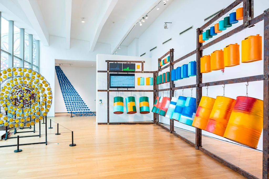 右侧作品为:蒋卓辰《58·93》油桶、金属钢架