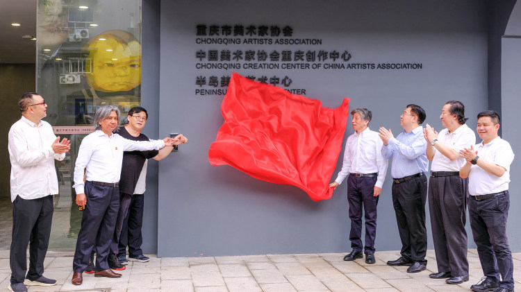 重庆美术事业的发展翻开了新的一页!7月4日上午,九龙坡区黄桷坪正街,伴随着冯远、范迪安、吴为山、徐里、杨晓阳等中国美术界的重要嘉宾大手一挥,红绸徐徐落下,崭新的重庆市美术家协会和中国美术家协会重庆创作中心的招牌出现在了众人面前。这标志着重庆市美术家协会(中国美术家协会重庆创作中心)正式入驻位于九龙美术半岛黄桷坪的新址。