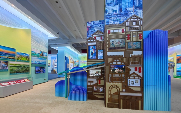 华龙网-新重庆客户端记者看到,在“山城人民幸福生活”展项,“吊脚楼”内的8扇“窗户”,每扇对应一面屏幕,播放着百姓日常生活的代表性画面,展现出山城人民共享更好的教育、更稳定的工作、更满意的收入等新时代景象。