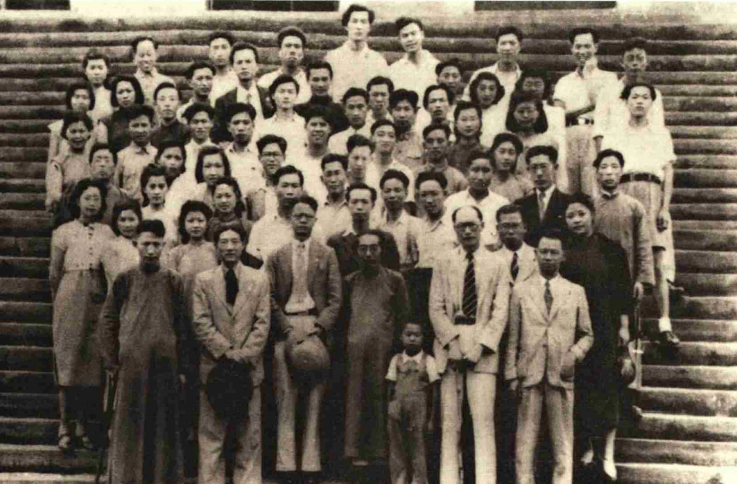 1942年重庆中央大学艺术系师生合影。前排左起傅抱石、徐悲鸿、黄显之、陈之佛。