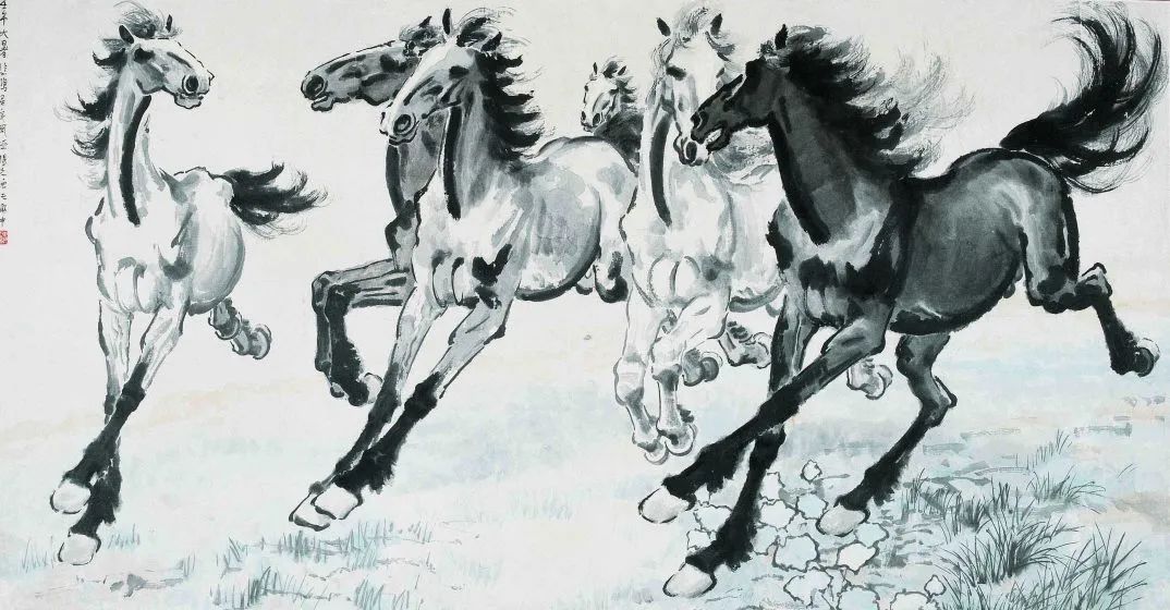 《群奔(壬午大暑)》徐悲鸿 纸本水墨