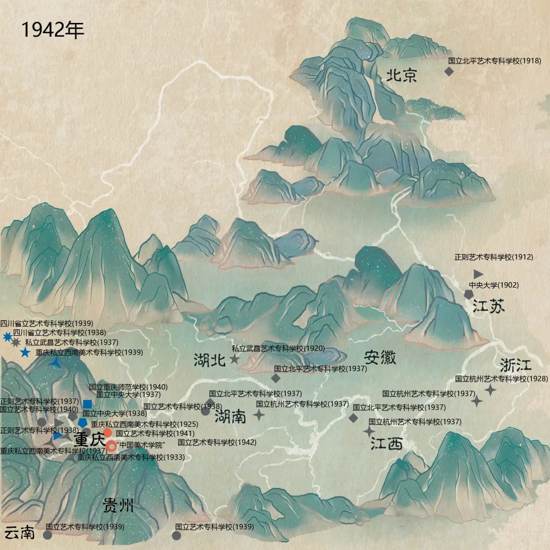 1937-1949年期间,多所美术学校(研究机构)内迁重庆或在重庆新建,中国现代美术教育在战时重庆延续并发展,培养出大量的美术人才。