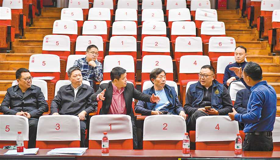 11月2日晚,巫山县委党校下庄校区,庞茂琨(前排左三)一行听当地干部介绍乡村振兴的进展成效。记者 齐岚森 摄/视觉重庆