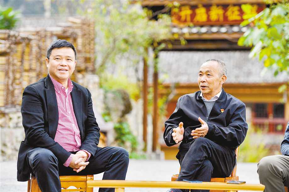 11月3日,毛相林(右)和庞茂琨在一起交流。记者 齐岚森 摄/视觉重庆