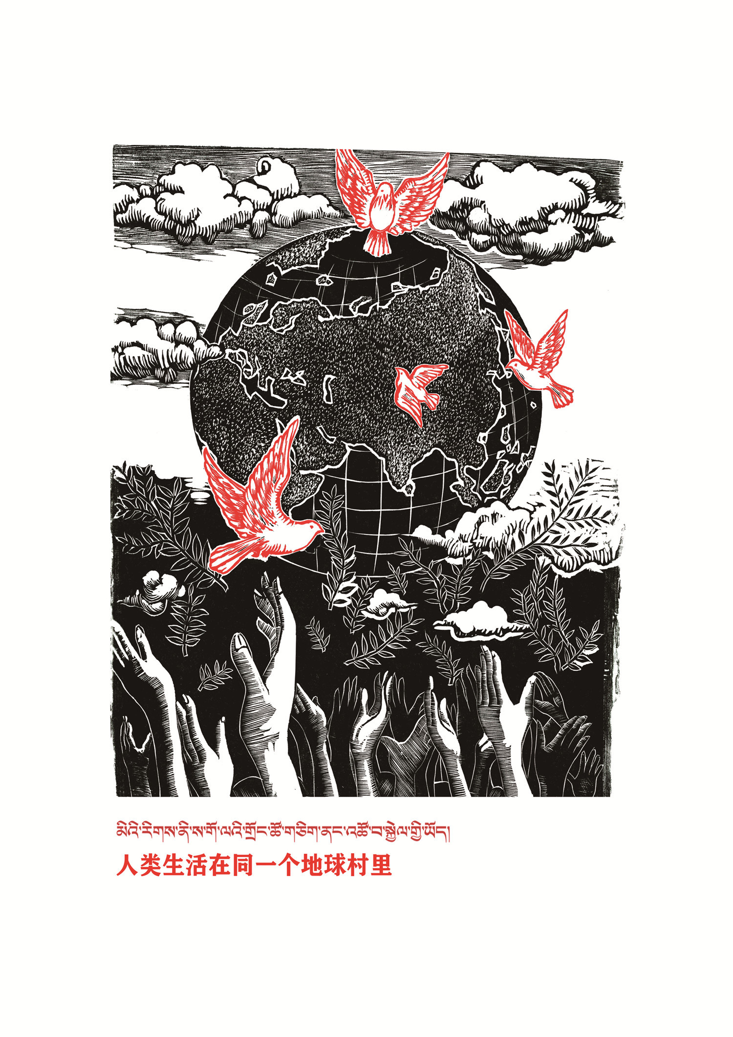 习近平新时代中国特色社会主义思想绘本 版画 指导教师:付继红 作者:付紫樱、何思婕、李关帅、龙江