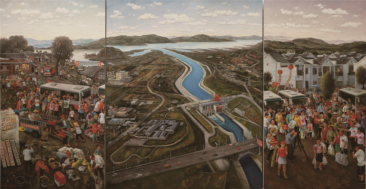 陈树中、陈一墨 丹江口库区的移民搬迁与南水北调世纪工程 油画