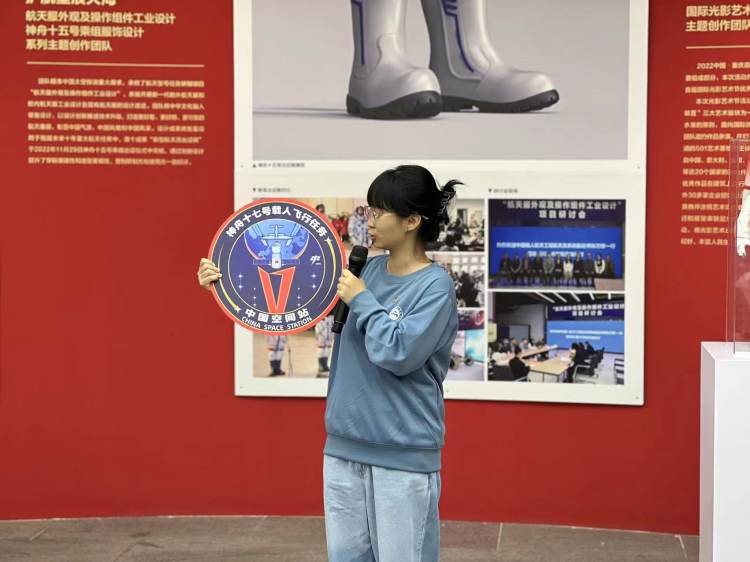 “中国传统文化融入到航天服设计当中,用设计去圆梦九天揽月,护航星辰大海。”在现场,航天服外观及操作组件工业设计、神舟十五号乘组服饰设计系列主题创作团队人员张一迪的讲述也赢得了一致喝彩。