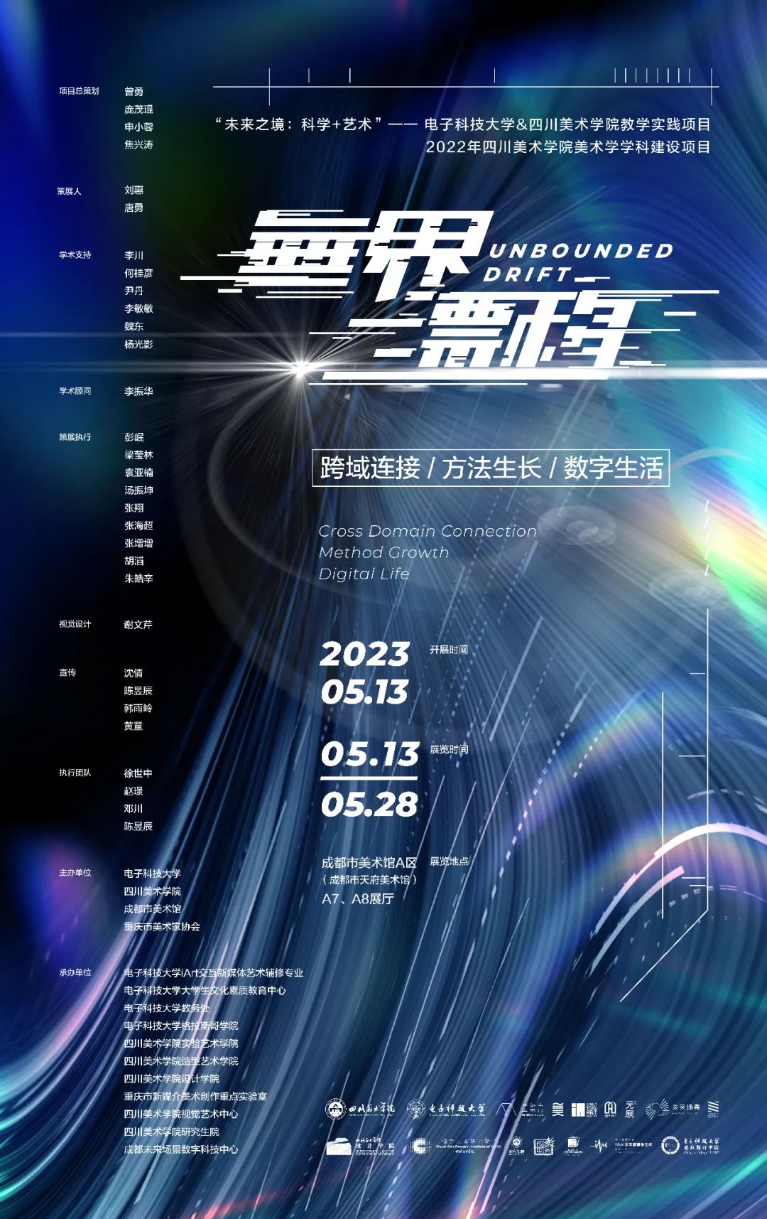 由电子科技大学、四川美术学院、成都市美术馆、重庆市美术家协会联合主办的第三届科技艺术联合教学与创作成果展“无界漂移——跨域连接、方法生长与数字生活”于5月13日在成都市美术馆正式开展。