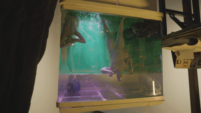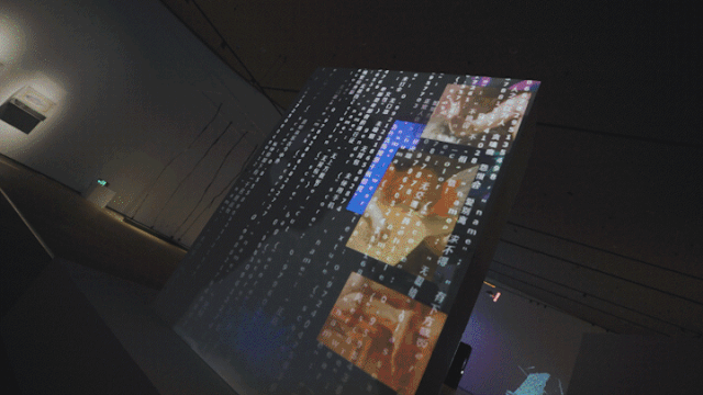 作品名称:《钓鱼》作者:胡滔类别:装置尺寸:260cm×50cm×240cm(可变)材料:屏幕、机械、摄像头创作年份:2023年