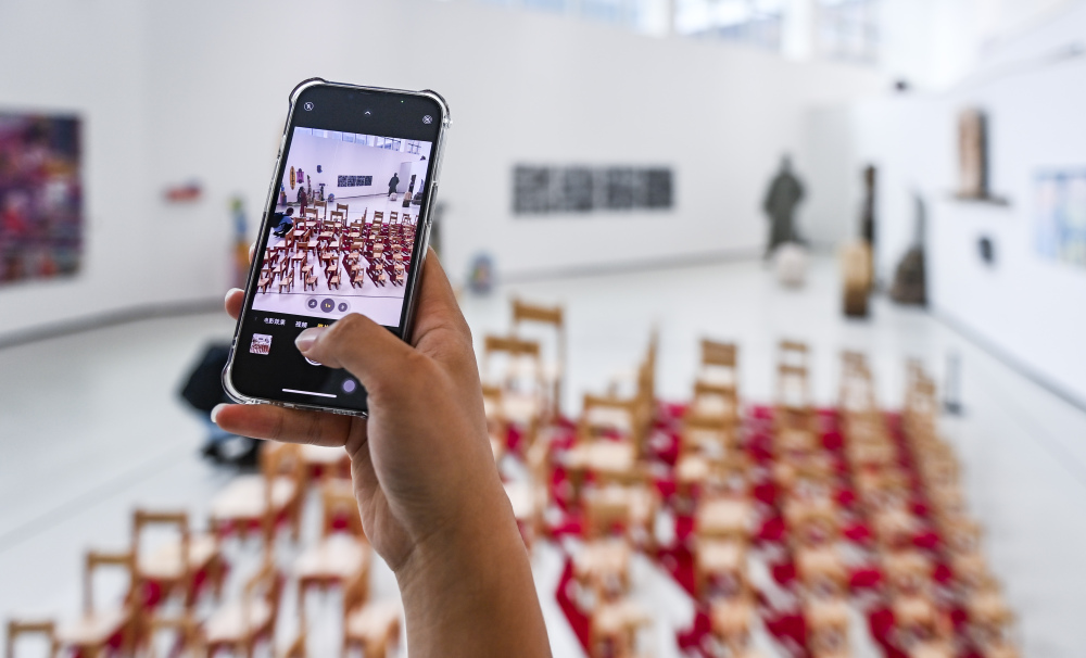 ▲观众用手机拍下自己喜欢的作品。记者 齐岚森 摄
