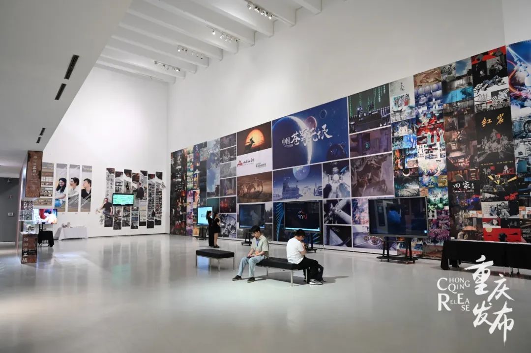 影视动画学院展厅,作者通过声画、动静、平面与立体结合等表现方式,呈现出一个讲述中国故事的、影游和漫路的缤纷世界。