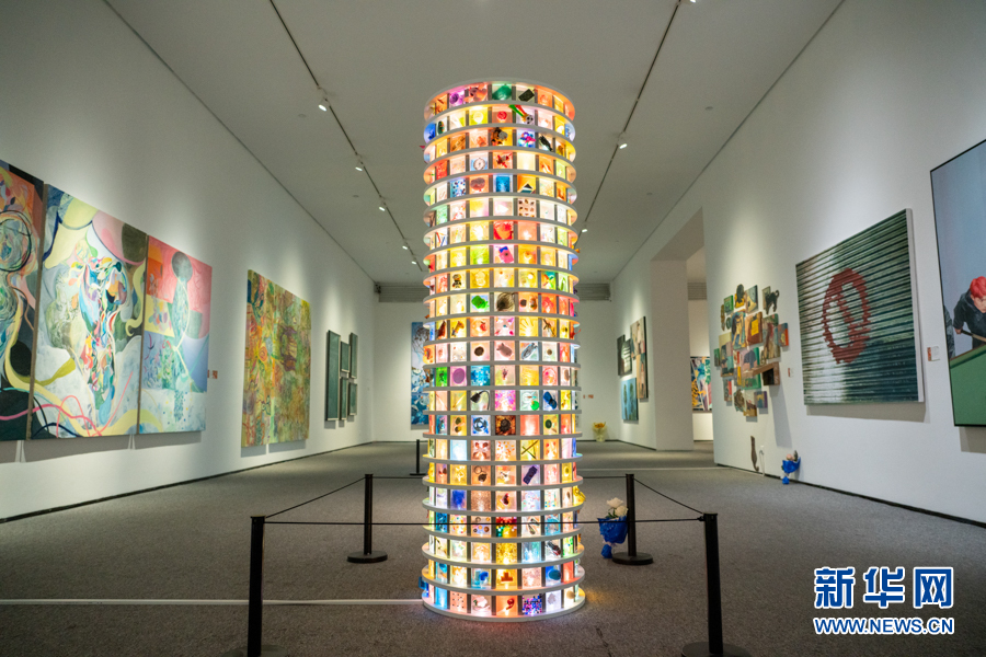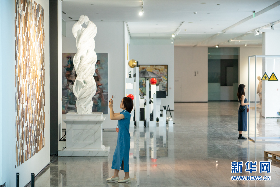 观众正在展览作品前留影。新华网 耿骏宇 摄