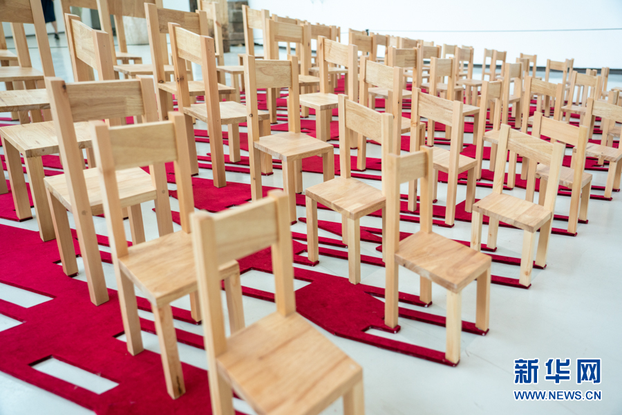 展览现场展示的雕塑作品《观众席》。新华网 耿骏宇 摄