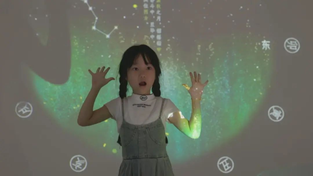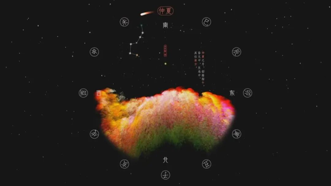张宇豪从小就立志长大后能够成为一名和父亲一样的飞行员,但小时候的一场手术,让他最终无缘飞行梦。“虽然很遗憾,我没有办法去实现这个梦想了,但是通过我的设计创作,再去将我的星空梦展现给世人。”《步天歌·观》基于中国古代天文体系,根据北斗七星的周年视运行,通过数字交互影像呈现不同意象元素及特征,构建了一个集天象、历法、气象、物候、干支等要素为一体的信息交互装置。