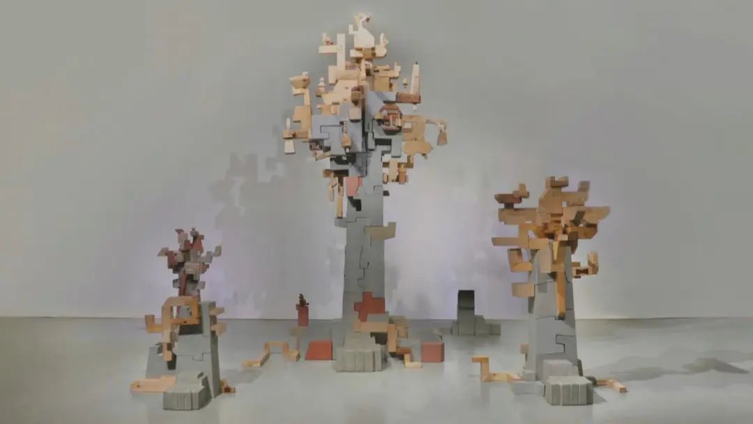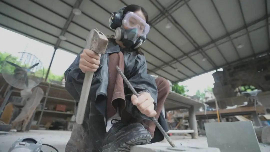 小时候,何嘉慧手中握着的是芭比娃娃,长大后,她拿起手中的刀锉,雕刻出心中所想。《柘磊森》将石头和木头以榫卯结构融合,创造出一个人与自然的和谐世界。树木和石头象征着自然界的力量和生命,而榫卯结构则代表着人类对自然的理解和应用。这个雕塑作品体量很大,一个人比较难完成,但她说,“青春就是要不留遗憾地去做自己喜欢做的事。”