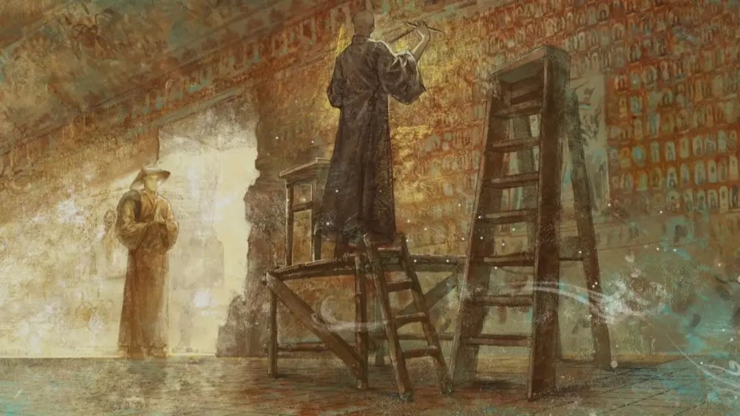 陈欣怡平常很喜欢看纪录片,在看到《敦煌》系列时,一沙一世界,让她一眼千年。拨开历史厚重的黄沙,莫高窟的故事在她笔下呈现。“希望自己的作品,也能体现出这种沧桑感,被风沙侵蚀过的、有历史沉淀的那种意境。”陈欣怡说。