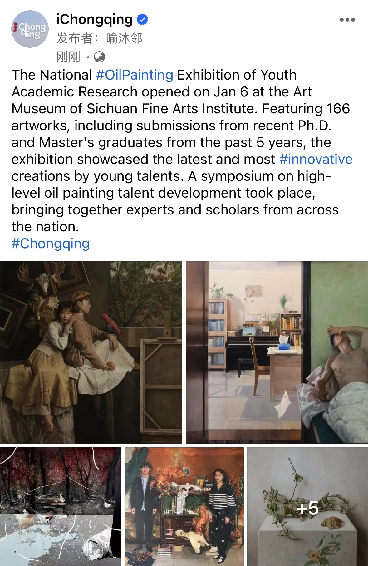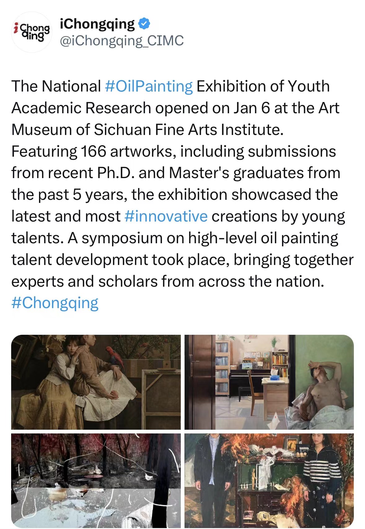 The National #OilPainting Exhibition of Youth Academic Research opened on Jan 6 at the Art Museum of Sichuan Fine Arts Institute.