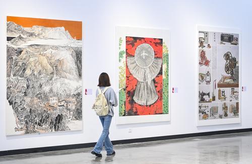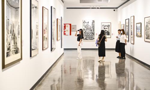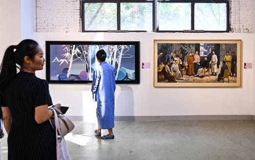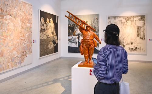 ▲4月28日,九龙坡区黄桷坪102艺术基地廉洁文化艺术展览馆,“红岩清风”廉洁文化美术作品展览正式开展。图为观众正在观展。记者 齐岚森 摄
